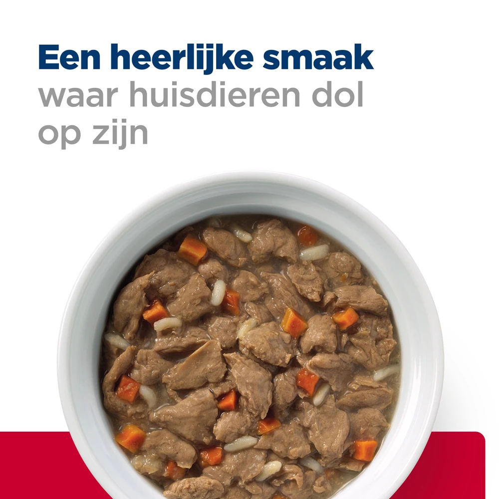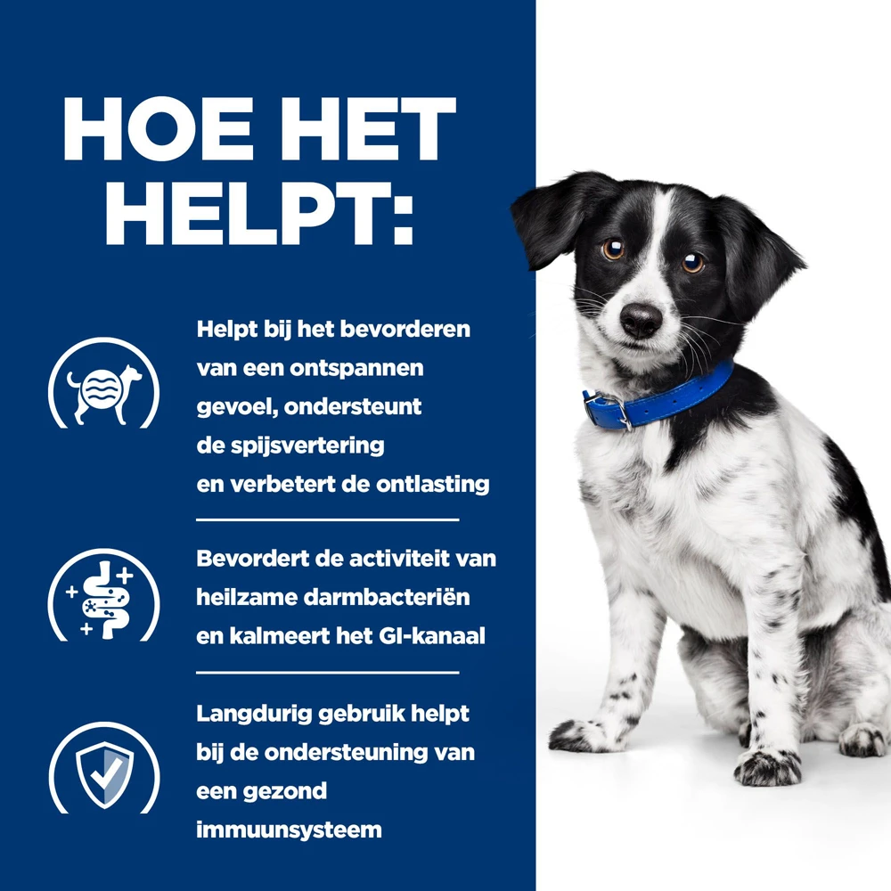- Gemaakt met Hill’s unieke ActivBiome+ ingrediënttechnologie, een speciale mix van prebiotische vezels, om het darmmicrobioom snel te voeden